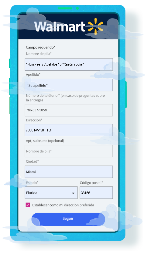 Cuando la tienda te solicite la direccion de envío ( Shipping Address ),